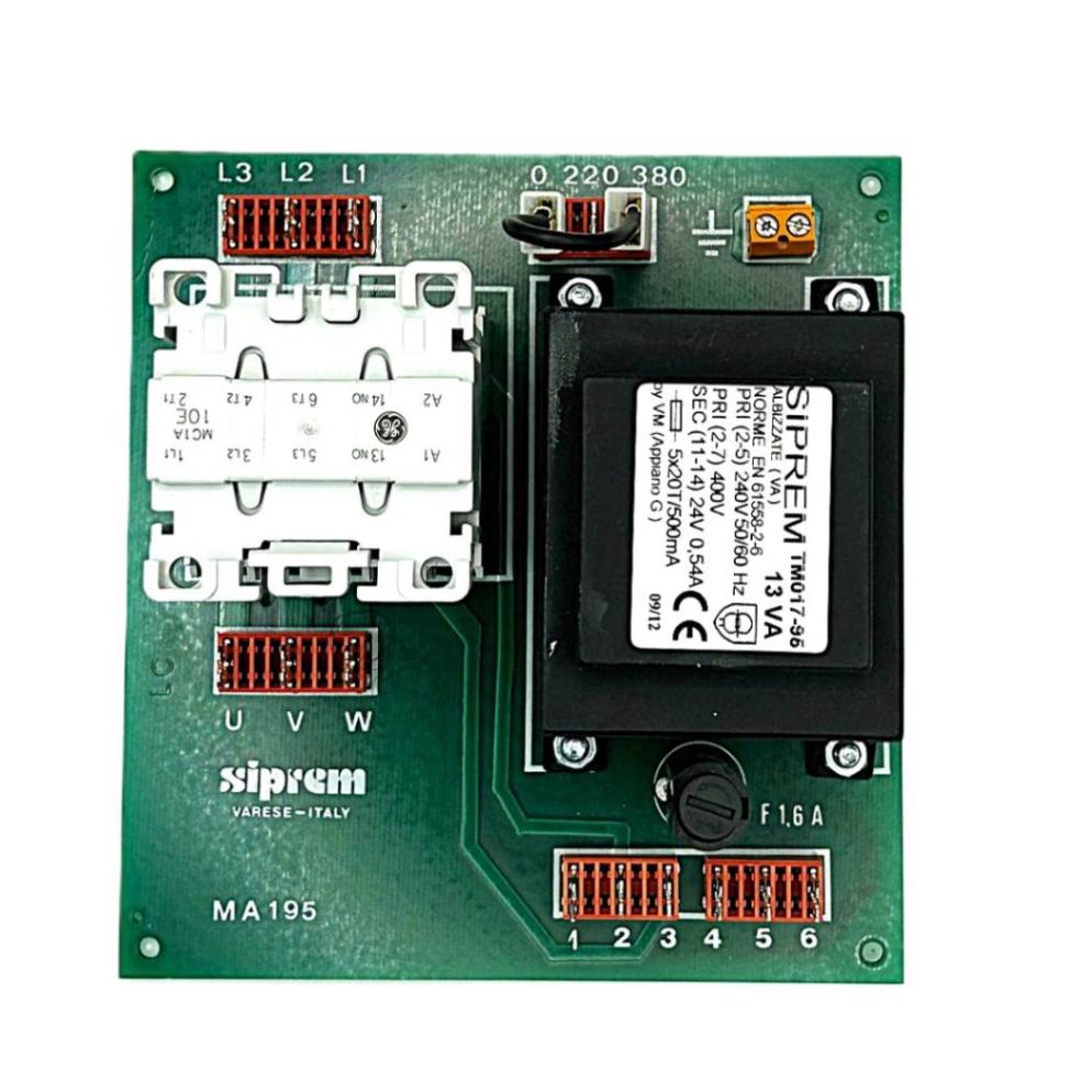 The PCB for Omega TA32 meat mincer, designed for single phase version, contains the electronic components that control the motor and other key functions of the machine. This essential part ensures smooth operation and efficient performance, helping to maintain the mincer's reliability and functionality.