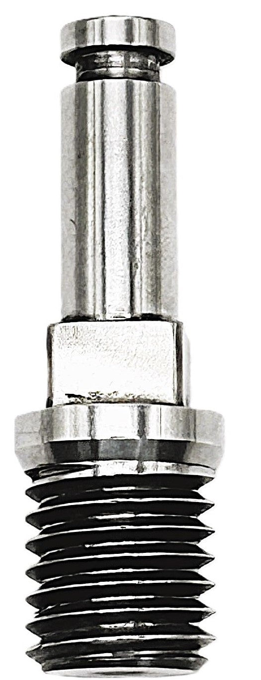 The plate stud for Mainca PC82/22A meat mincers is a genuine replacement part, made in Spain, designed to securely hold the grinding plate in place. This threaded metal rod screws into the centre of the grinding plate and into the mincer's housing, preventing the plate from loosening during operation. By ensuring a secure attachment, it helps maintain smooth and reliable performance, reducing the risk of damage to the machine.